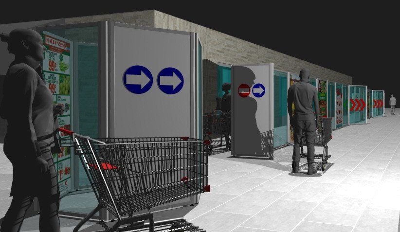 Questo consente di creare, con estrema facilità, barriere mobili di separazione per favorire il convogliamento dei flussi di pubblico nel rispetto del precauzionale distanziamento tra le persone.